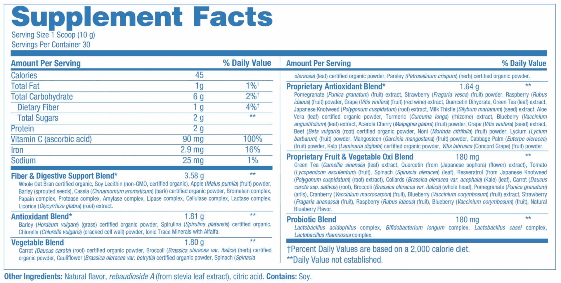 | Proprietary Fruit & Vegetable Oxi Blend |